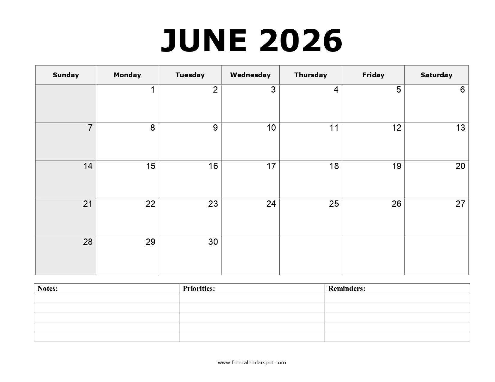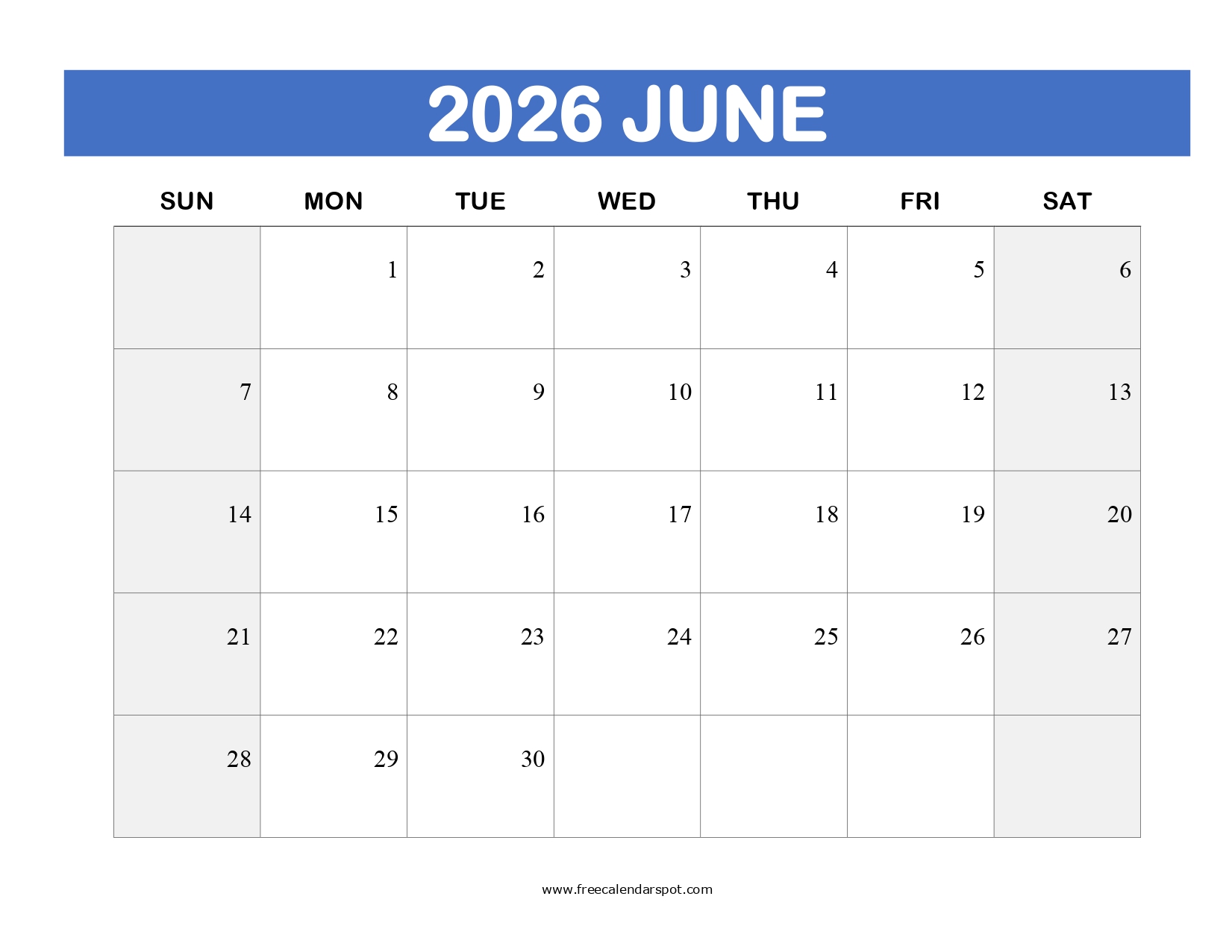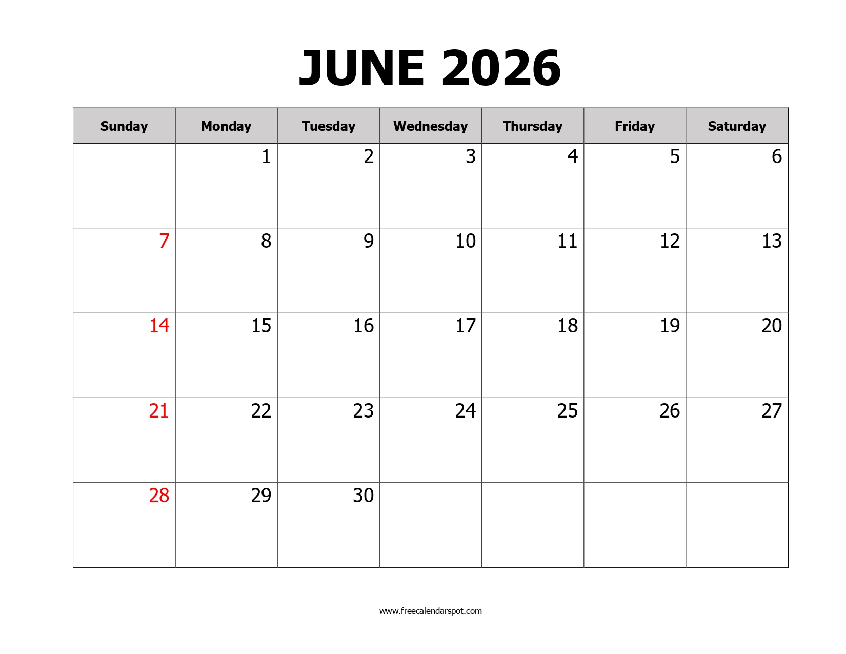 - June is the sixth month of the year, there are 30 days in this month.